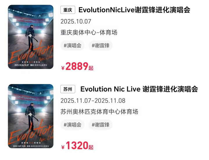 给大家看一下谢霆锋的演唱会数据,目前重庆体育场演唱会在二级平台实现了大幅溢价,并且,苏州体育场方面也是大幅溢价。